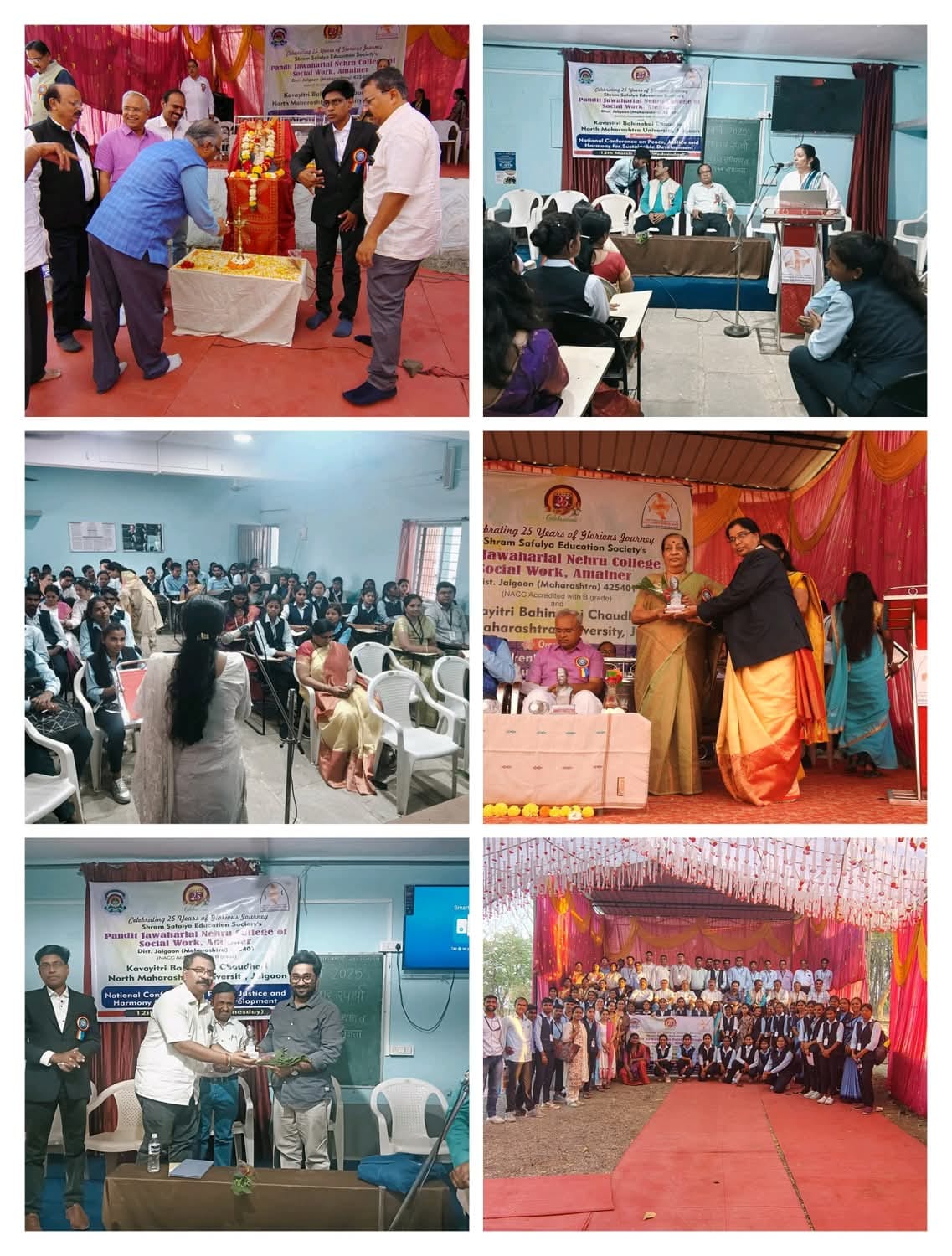 सविस्तर वृत्त की,अमळनेर मधील श्रम साफल्य एज्युकेशन सोसायटी संचलित पंडित जवाहरलाल नेहरू समाजकार्य महाविद्यालय व क. ब. चौ उत्तर महाराष्ट्र विद्यापीठाच्या संयुक्त विद्यमाने शाश्वत विकास आणि शांती, न्याय, सदभाव या विषयावर एक दिवसीय परिषद आयोजित करण्यात आली.